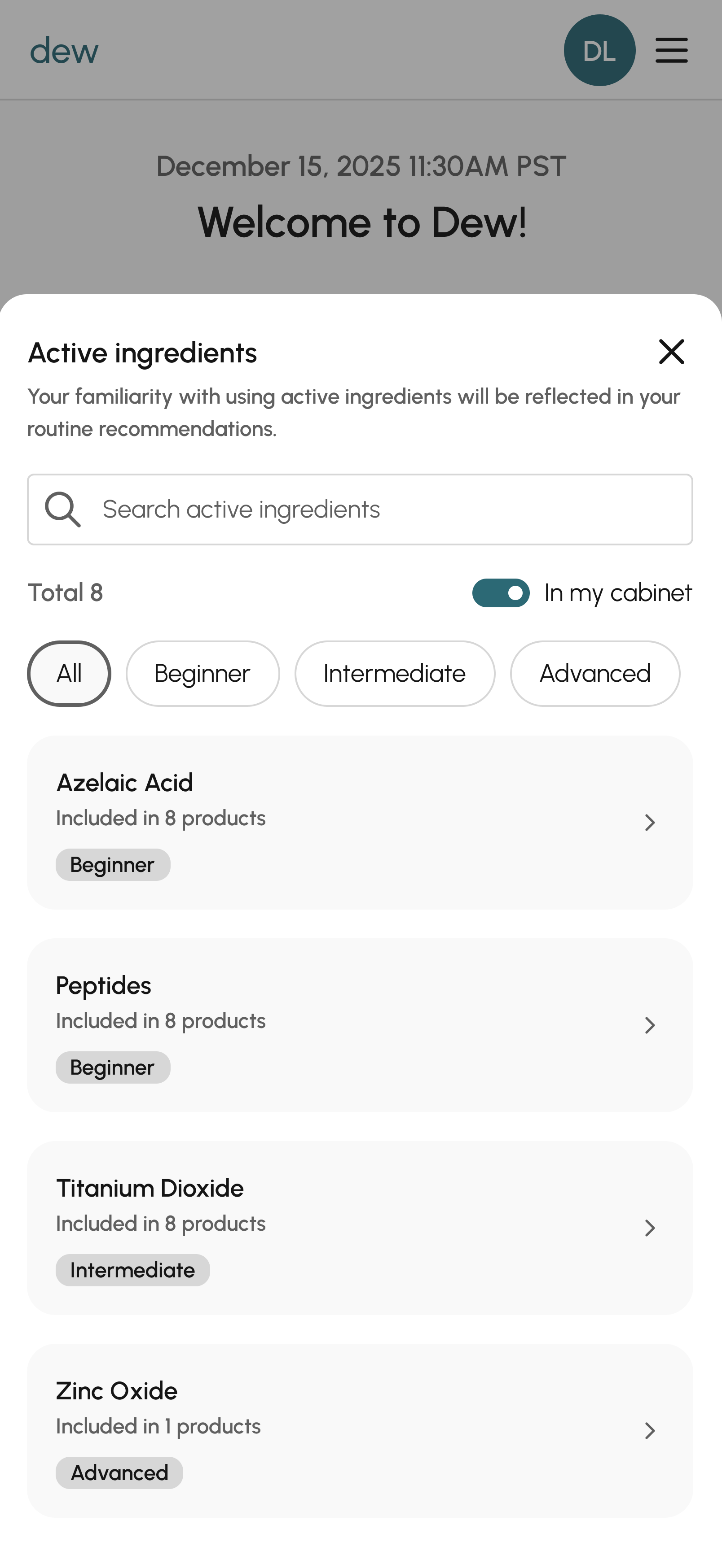 Not everyone’s skin can handle the same level of actives. Dew lets you mark your comfort level with ingredients like retinoids or exfoliating acids, then adjusts your routine accordingly.